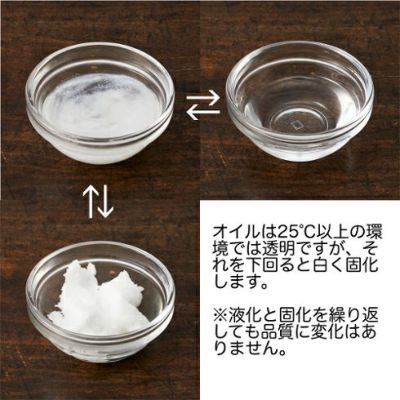 ココナッツオイルが液化している場合、勢いよく開瓶するとオイルがこぼれる場合がございます。また、酸化しにくい特性があるココナッツオイルですが、水分と雑菌が混ざらないようにご注意ください。乾いて衛生的なスプーンやバターナイフをお使いください。
